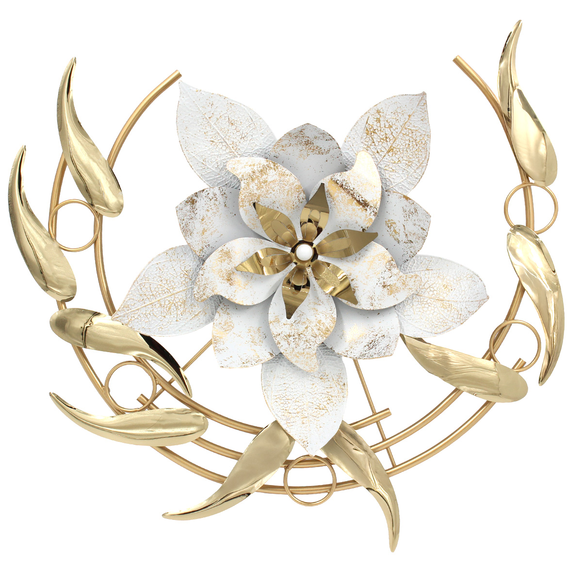 Αυτός ο μεταλλικός πίνακας τοίχου έχει διαστάσεις 55×55 εκ. Είναι σε λευκό χρυσό χρώμα και απεικονίζει λουλούδια. Μια μοντέρνα πρόταση για να αναδείξετε τον χώρο σας.
