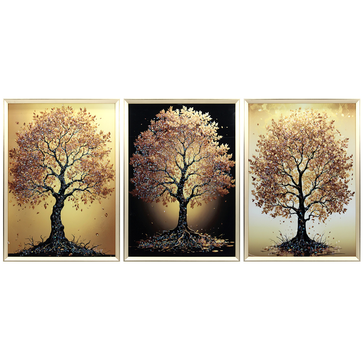 Πίνακας τοίχου ξύλινος 3πτυχος 150Χ70 εκ. με χρυσή κορνίζα και ανάγλυφα strass