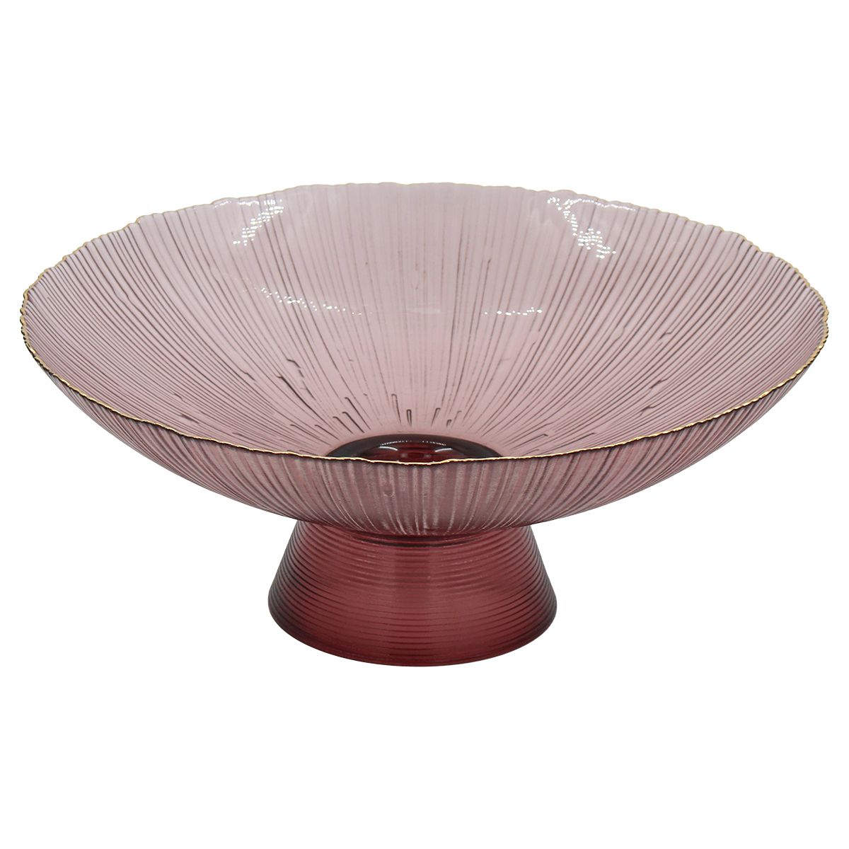 Πιατέλα – Κουπ γυάλινο κολωνάτο Φ34Χ14 εκ. Μωβ με Χρυσό χείλος