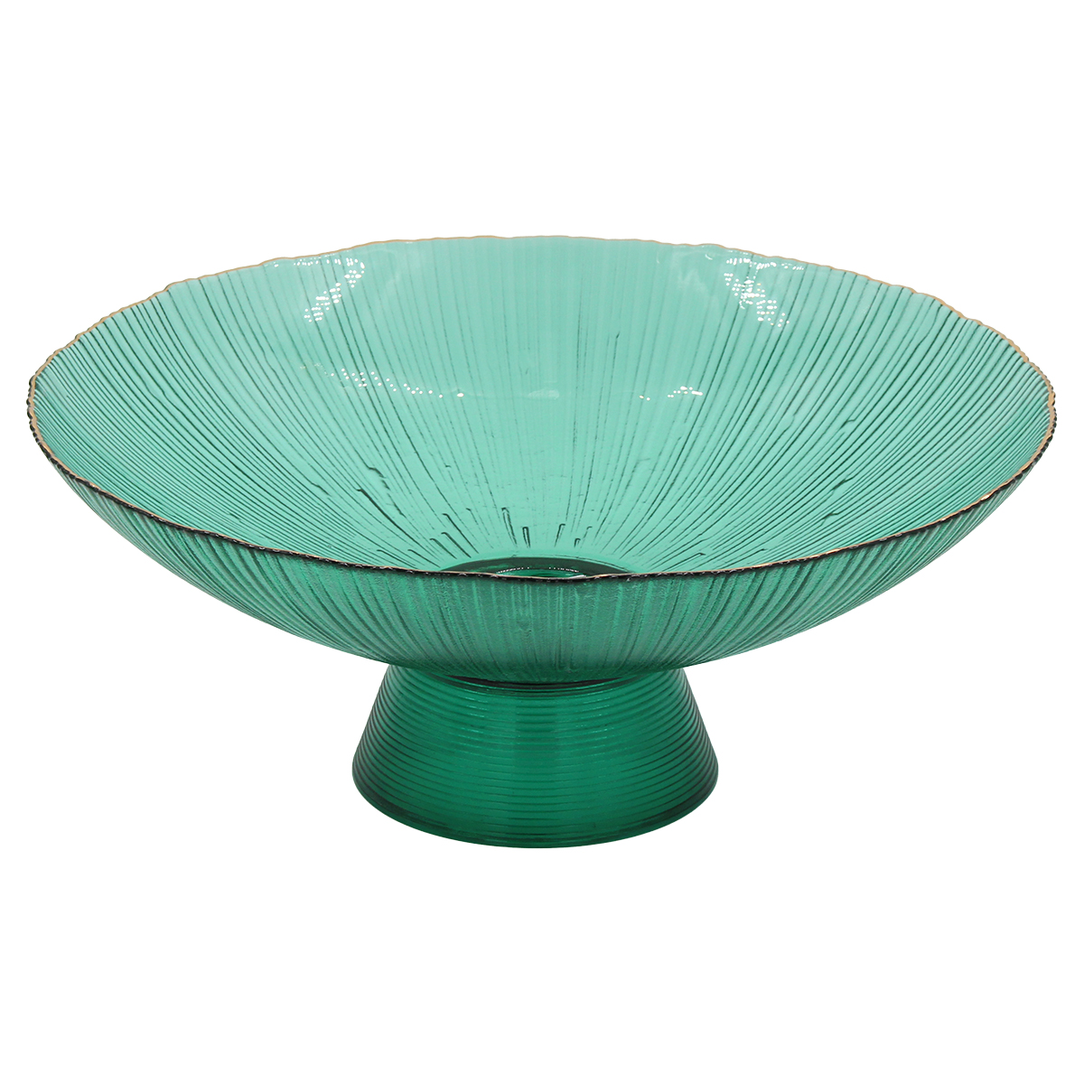 Αυτή η γυάλινη κολωνάτη πιατέλα (Φ34Χ14 εκ.) σε πετρόλ απόχρωση με χρυσό χείλος προσδίδει πολυτελή αίσθηση σε κάθε χώρο.