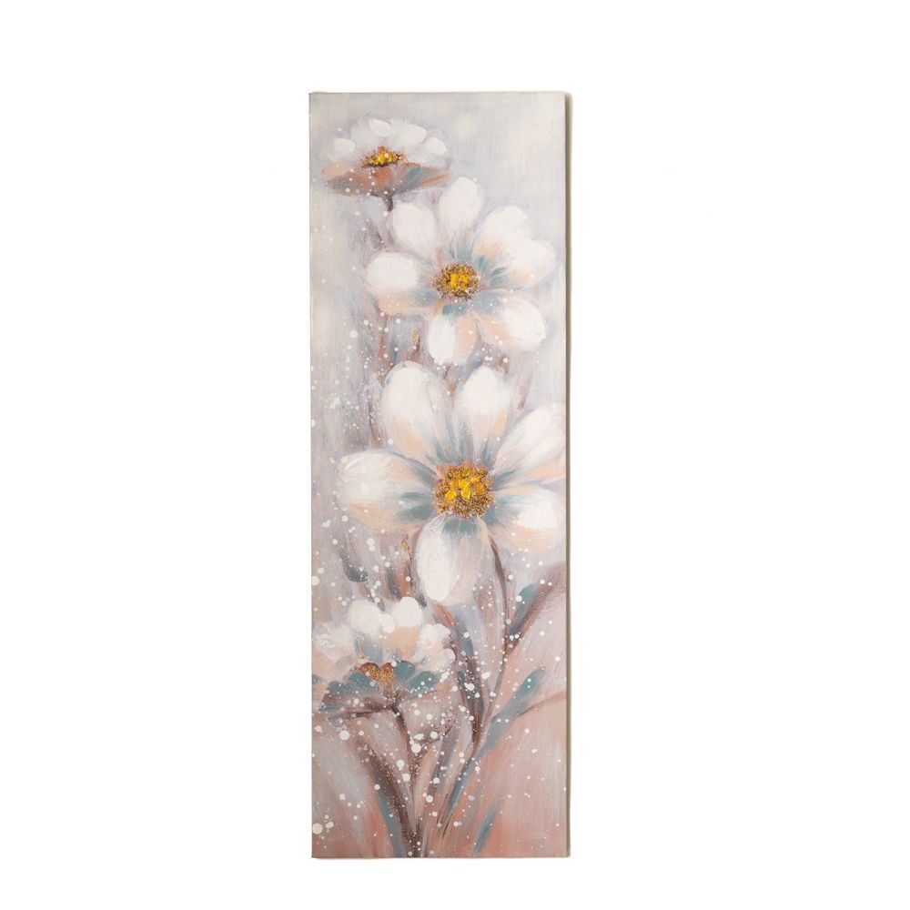 Πίνακας ελαιογραφία με λουλούδια λευκά σε τυπωμένο καμβά 40χ3 χ120εκ.