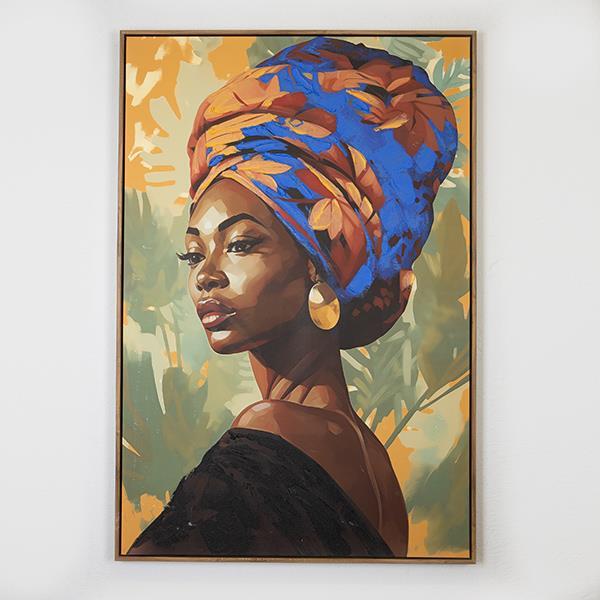 ΠΙΝΑΚΑΣ ΚΑΜΒΑΣ ΓΥΝΑΙΚΑ ΜΕ ΤΟΥΡΜΠΑΝΙ ΜΠΛΕ – ΠΟΡΤΟΚΑΛΙ 82.6×122.6cm