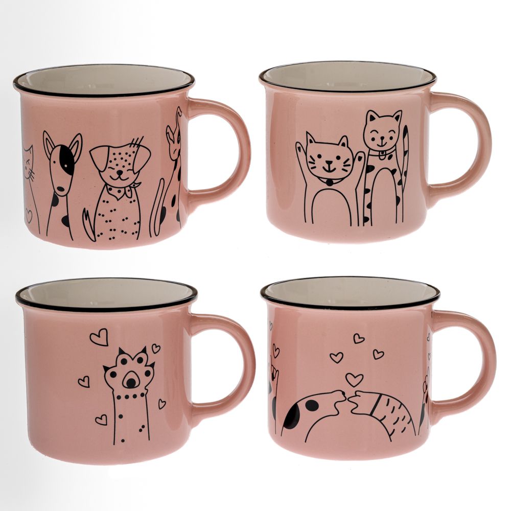 ΡΟΖ ΚΕΡΑΜΙΚΗ ΚΟΥΠΑ ΜΕ ΦΙΓΟΥΡΑ ΓΑΤΑΣ AND ΣΚΥΛΟΥ 460ml ΣΕ 4 ΣΧΕΔΙΑ (10Χ9ΕΚ)