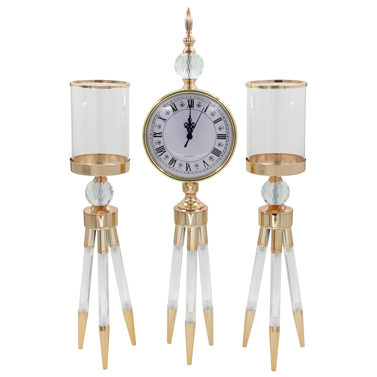 Σετ 3 τεμ Ρολόι με κρύσταλλο 16Χ9Χ62 εκ. και 2 κηροπήγια Φ10Χ49 εκ. Χρυσά – KESKOR 43231