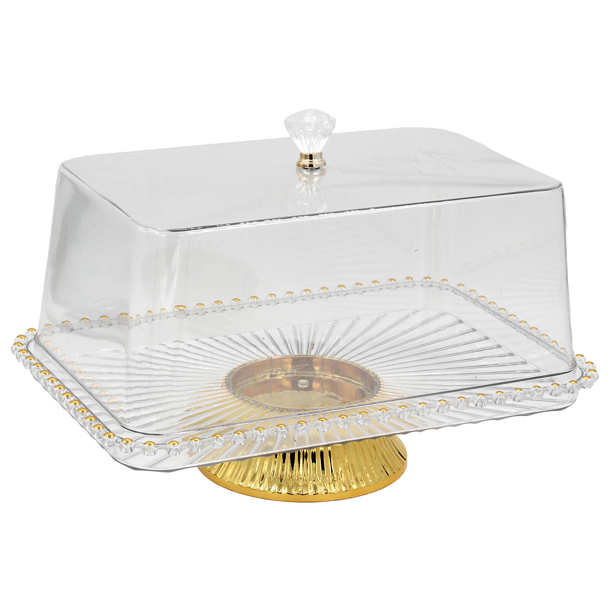 Τουρτιέρα – πιατέλα κολωνάτη πλαστική με καπάκι 33Χ21,5Χ19 εκ. με χρυσό