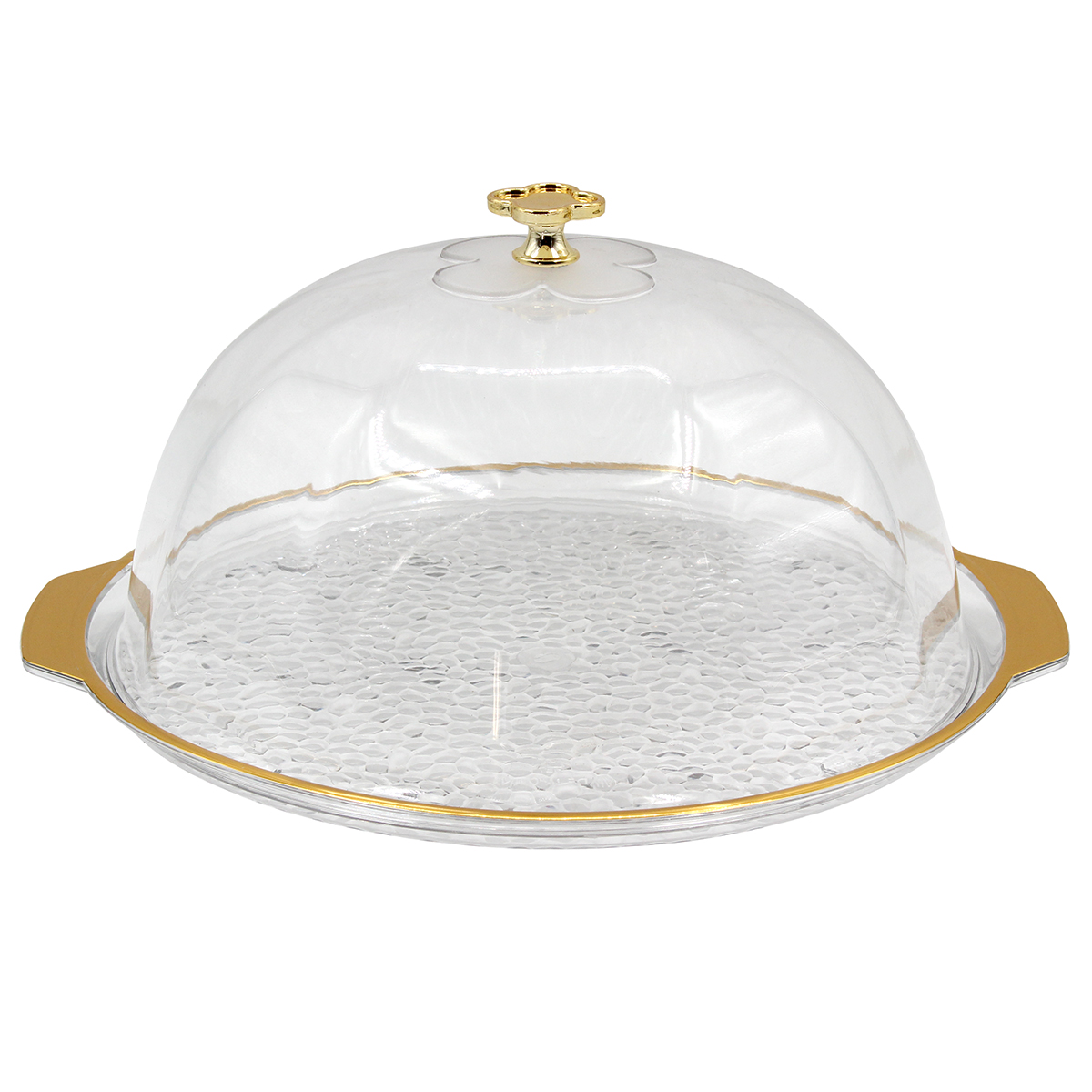 Τουρτιέρα – πιατέλα πλαστική με καπάκι 28Χ25,5Χ12 εκ. με χρυσό