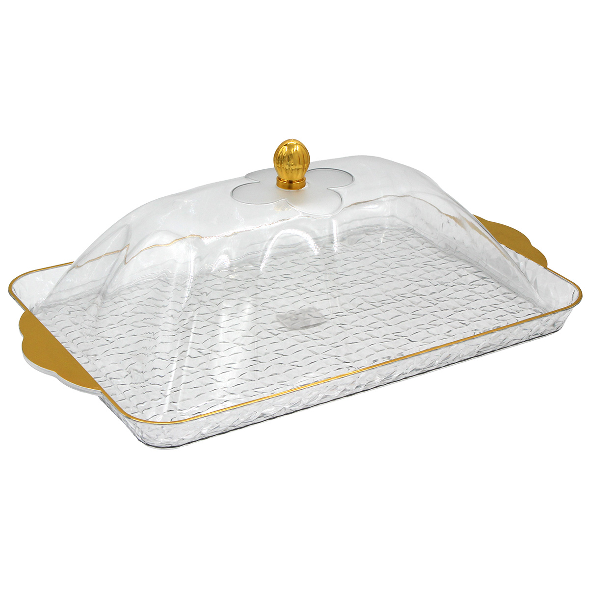 Τουρτιέρα – πιατέλα πλαστική με καπάκι 51Χ31,5Χ16 εκ. με χρυσό