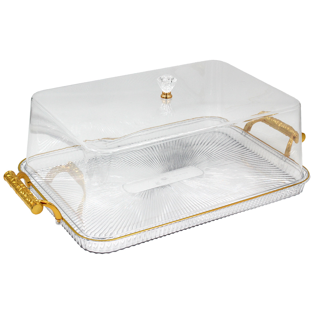 Τουρτιέρα – πιατέλα πλαστική με καπάκι 50Χ30Χ15 εκ. με χρυσό
