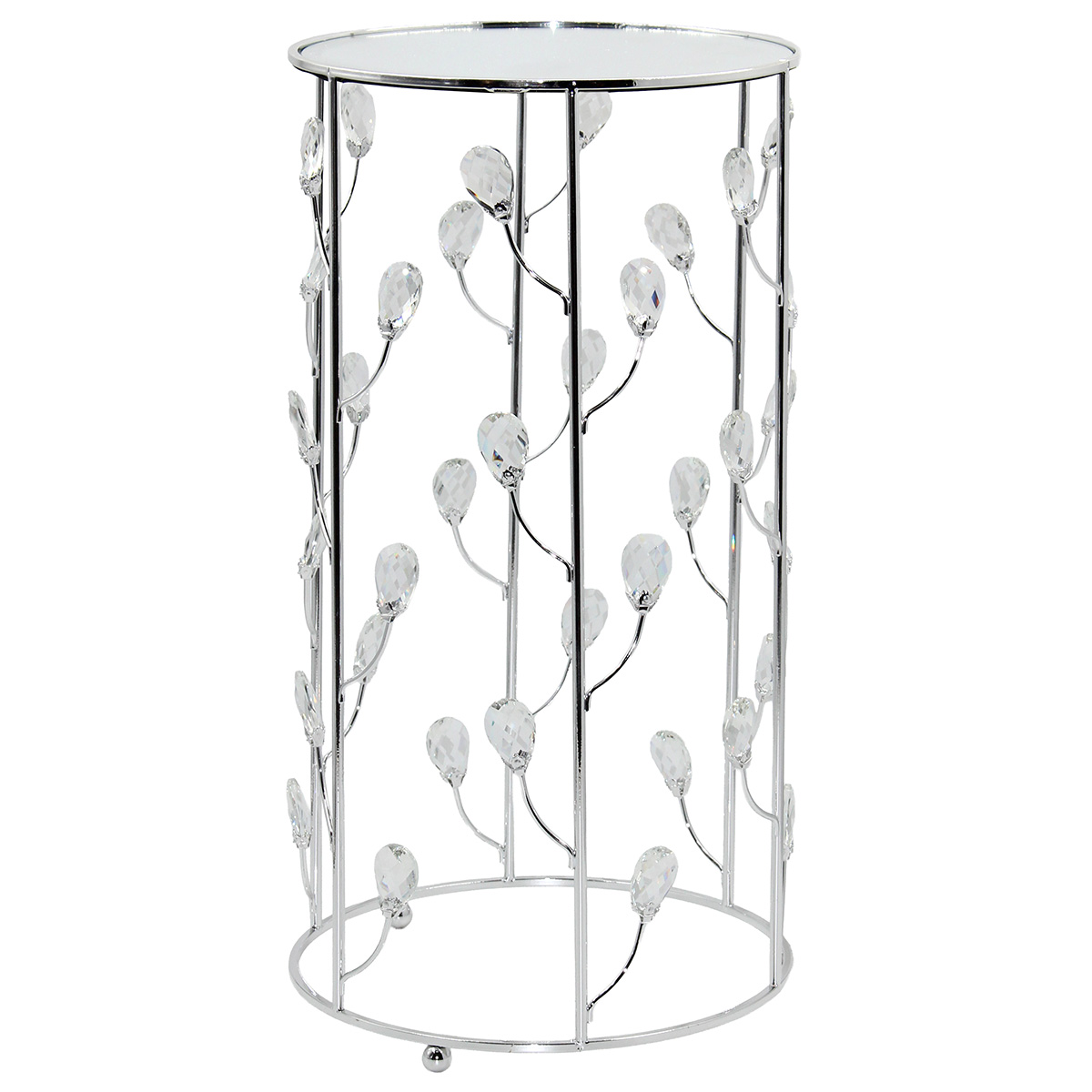 Τραπέζι σαλονιού μεταλλικό Φ25Χ50 εκ. Ασημί με κρύσταλλα και καθρέπτη