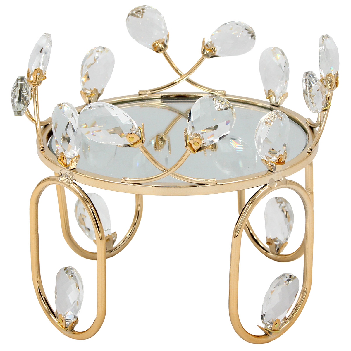 Τραπεζάκι – Stand διακοσμητικό μεταλλικό Φ18Χ15 εκ. Χρυσό με κρύσταλλα και καθρέπτη