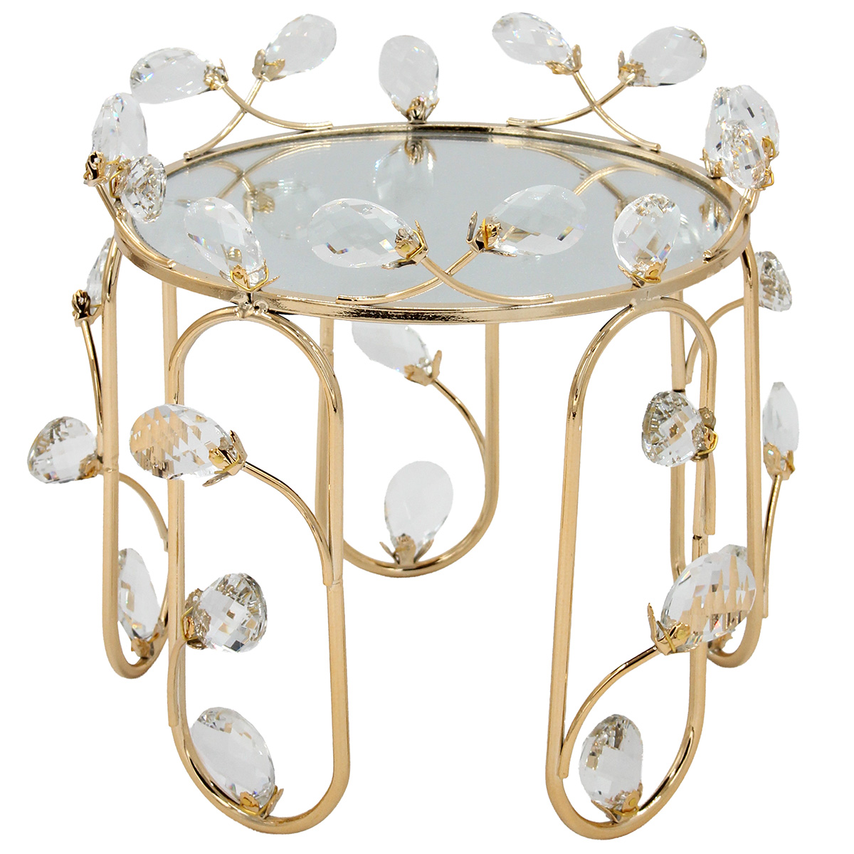Τραπεζάκι – Stand διακοσμητικό μεταλλικό Φ23Χ22 εκ. Χρυσό με κρύσταλλα και καθρέπτη