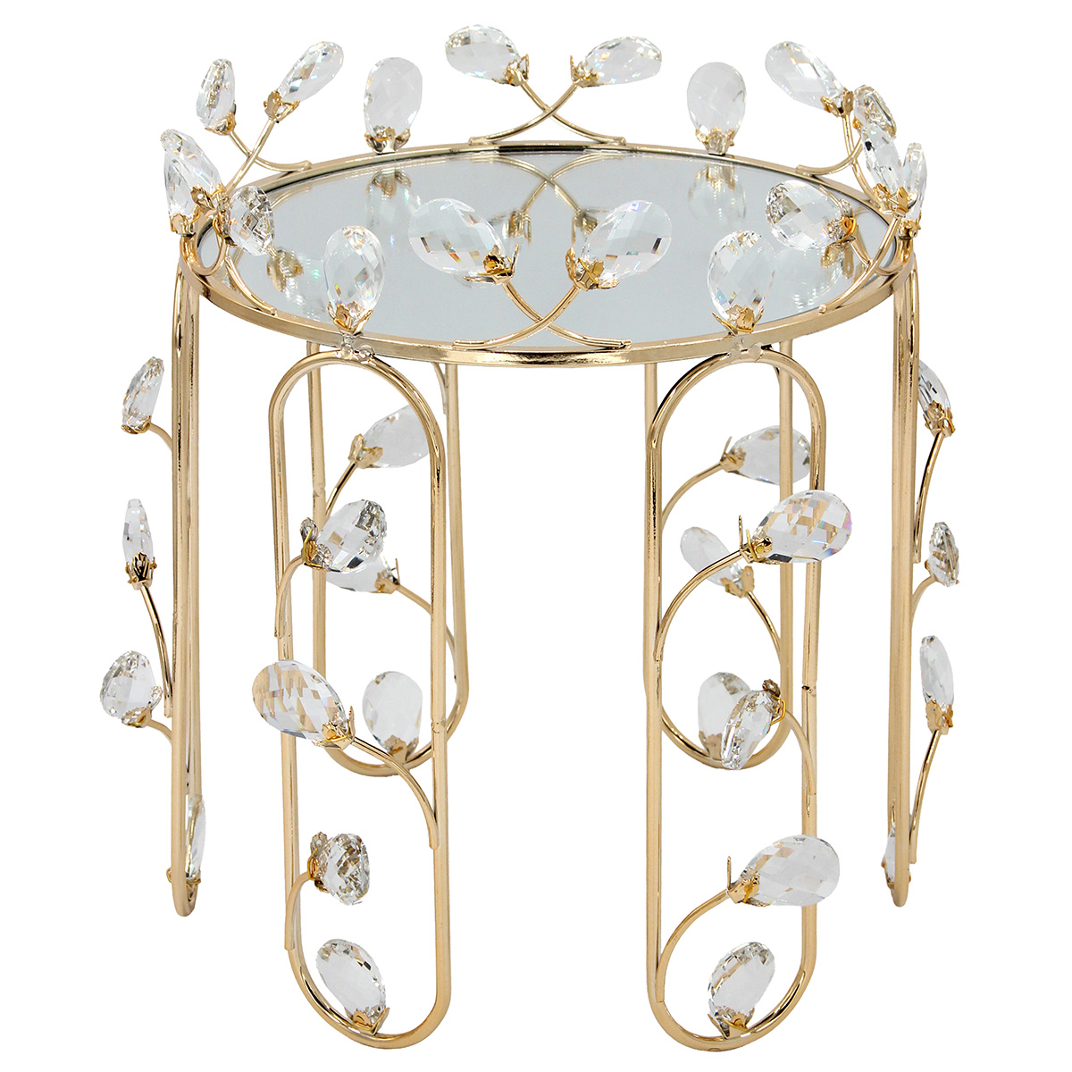 Τραπεζάκι – Stand διακοσμητικό μεταλλικό Φ27Χ32 εκ. Χρυσό με κρύσταλλα και καθρέπτη