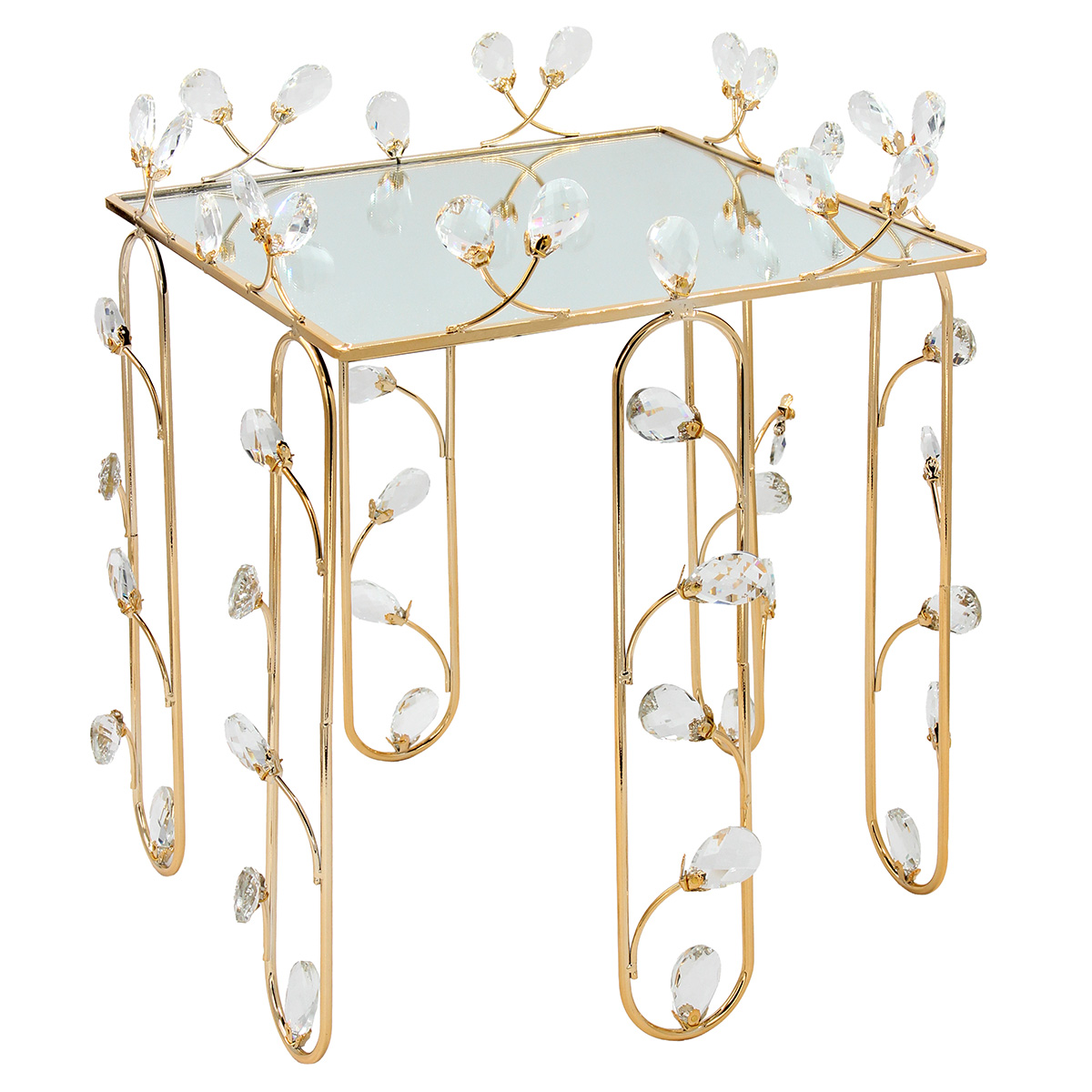 Τραπεζάκι – Stand διακοσμητικό μεταλλικό 36Χ36Χ40 εκ. Χρυσό με κρύσταλλα και καθρέπτη