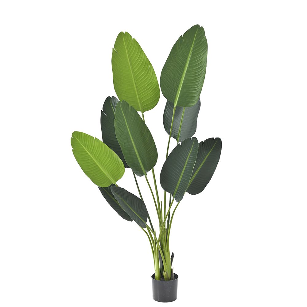 Τεχνητό φυτό μπανανιά, ύψους 150εκ. τοποθετημένο σε μαύρη πλαστική γλάστρα διαστάσεων 15×13εκ. Αποτελείται από 10 φύλλα.