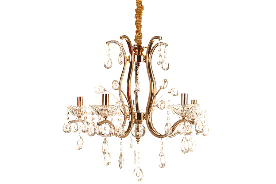 Φωτιστικό κρεμαστό 5 Χ Ε14 Φ60Χ54 εκ. χρυσό με κρύσταλλα. Διαθέτει υφασμάτινο κάλυμμα στην αλυσίδα το οποίο μπορείτε να το αφαιρέσετε.