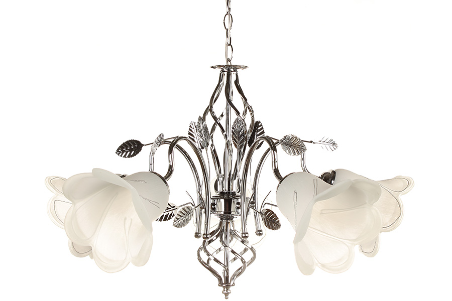 Φωτιστικό κρεμαστό 5 Χ Ε27 Φ70Χ42 εκ. χρώμιο με φύλλα και γυαλιά