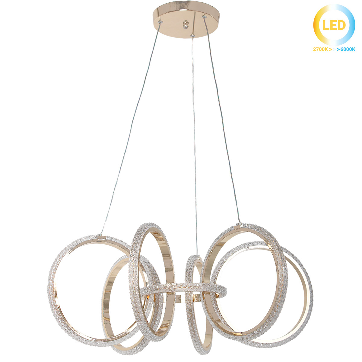 Φωτιστικό κρεμαστό LED 120W Φ69Χ27 εκ. Χρυσό με ακρυλικά – KESKOR 826673