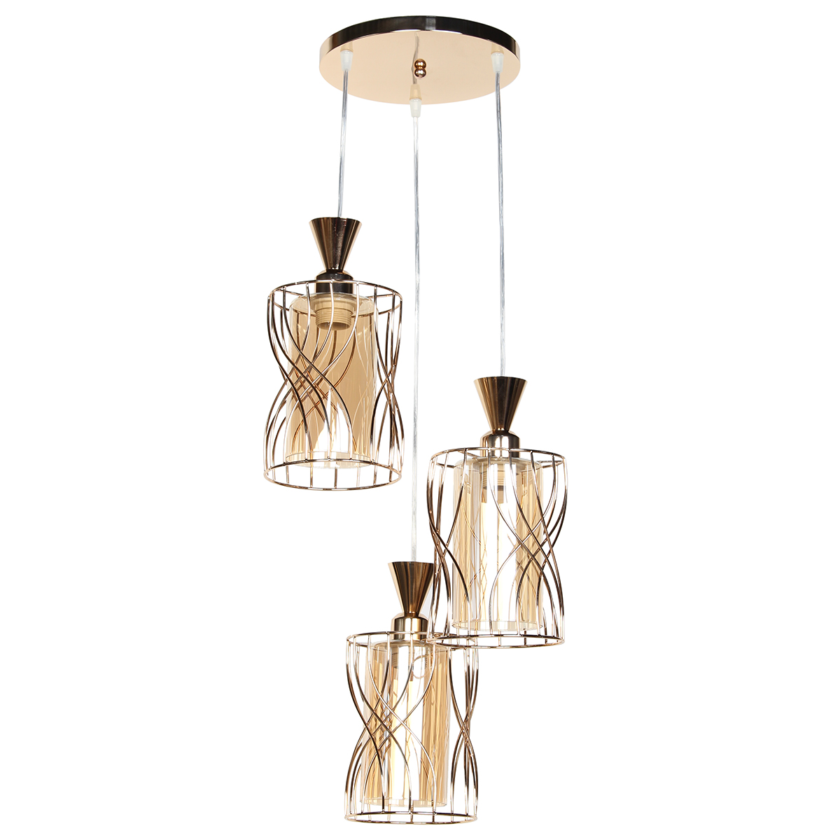 Φωτιστικό μεταλλικό κρεμαστό άνισο 3 Χ Ε27 Φ23 εκ. Χρυσό με γυαλιά
