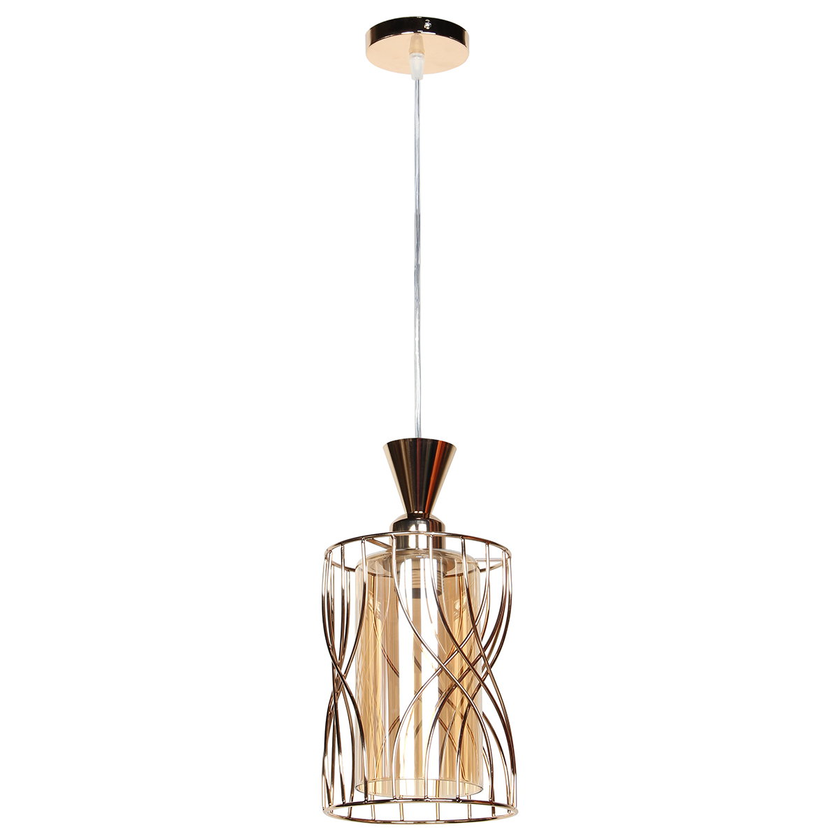 Φωτιστικό μεταλλικό κρεμαστό μονόφωτο Ε27 Φ15Χ28-90 εκ. Χρυσό με γυαλί