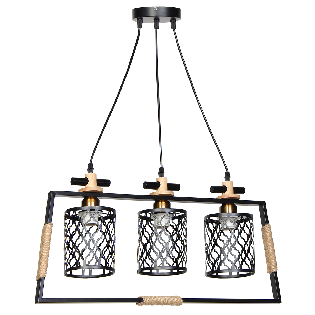 Φωτιστικό μεταλλικό κρεμαστό 3 Χ Ε27 70Χ12,5Χ31-90 εκ. Μαύρο με σχοινί