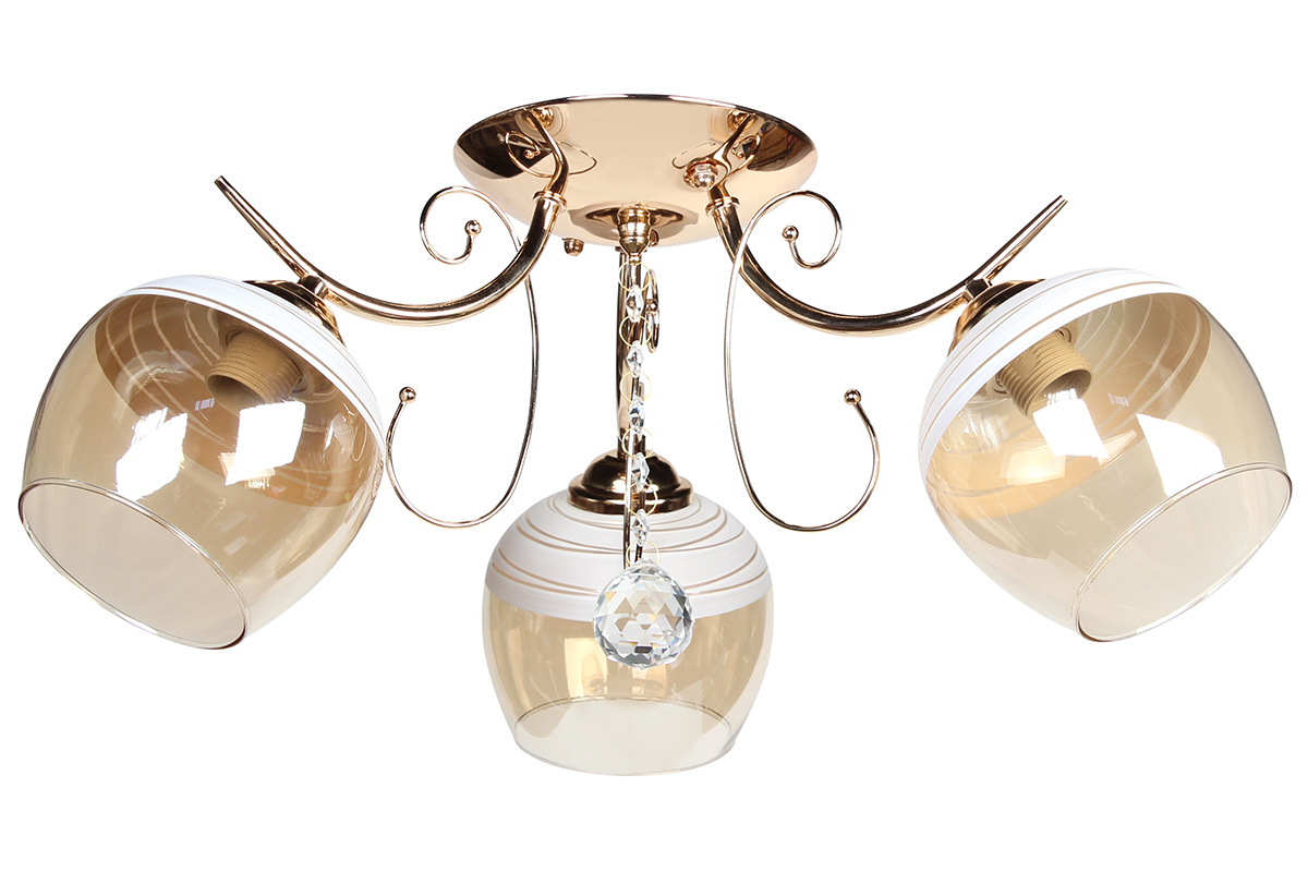 Φωτιστικό οροφής 3 Χ Ε27 Φ56Χ22 εκ. χρυσό με γυαλιά και κρύσταλλα