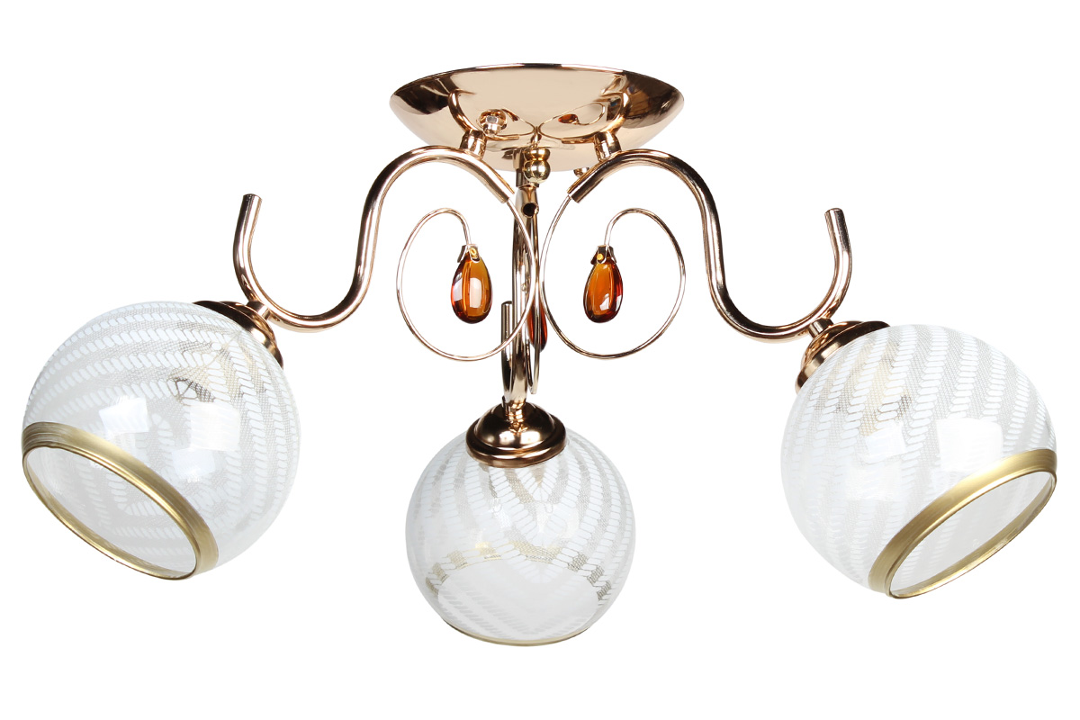 Φωτιστικό οροφής 3 Χ Ε27 Φ56Χ26 εκ. χρυσό με γυαλιά και μελί γυάλινα διακοσμητικά.