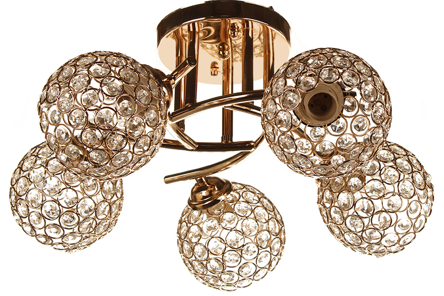 Φωτιστικό οροφής 5 Χ Ε27 Φ48Χ23 εκ. χρυσό με κρύσταλλα