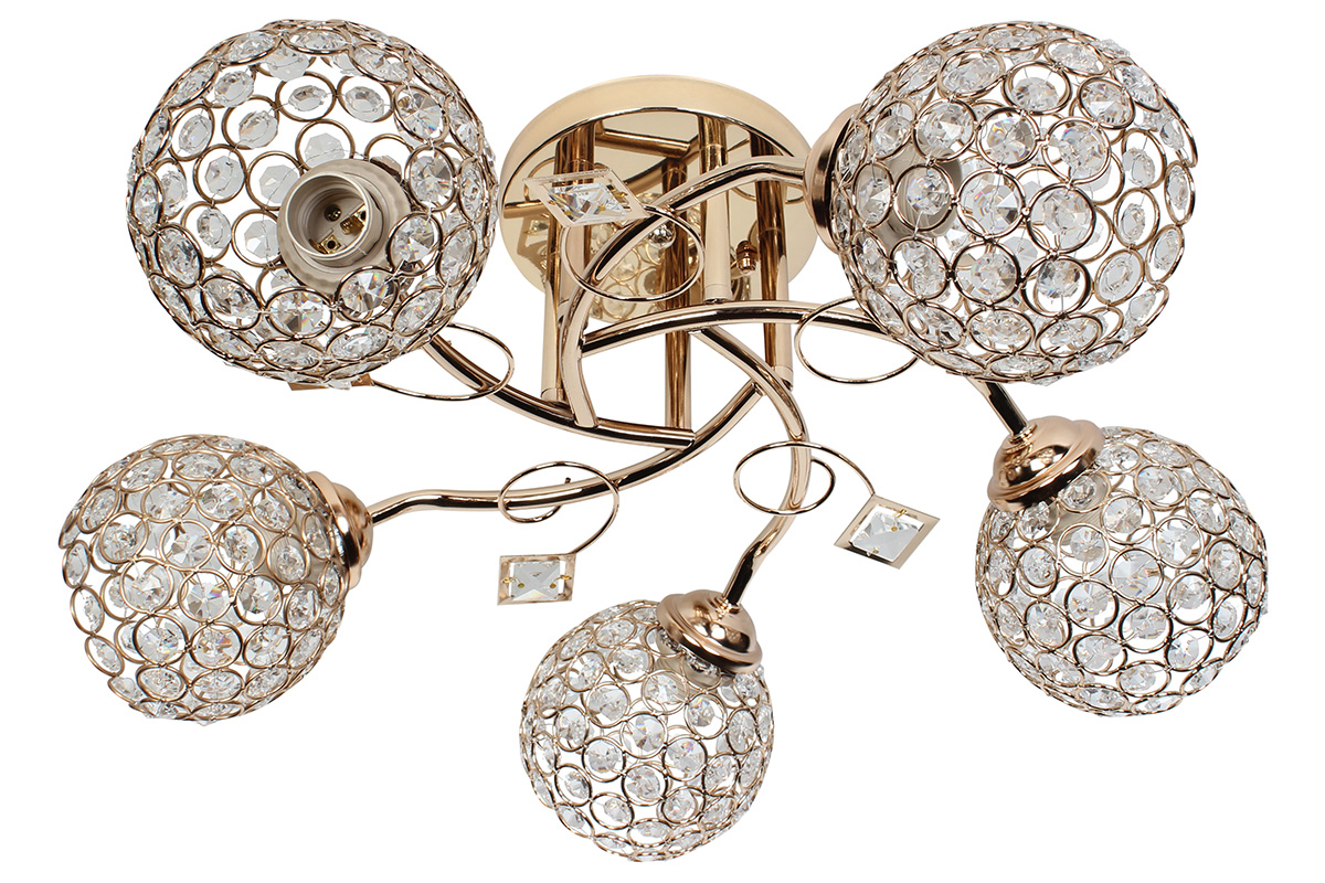 Φωτιστικό οροφής 5 Χ Ε27 Φ56Χ21 εκ. χρυσό με κρύσταλλα