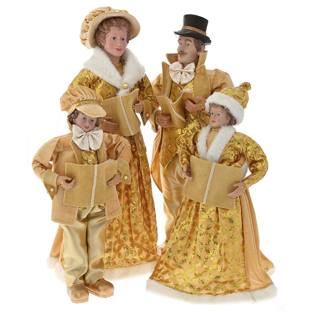 Βελούδινη οικογένεια 4 τεμαχίων που ψέλνει τα κάλαντα. Δεν έχει ήχο, ούτε κίνηση. Αποτελείται απο 4 ξεχωριστές φιγούρες. Τα παιδάκια 75εκ και το ζευγάρι 95εκ