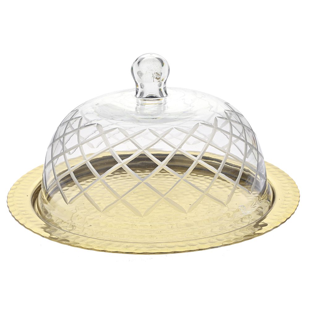 ΧΡΥΣΟΣ ΣΤΡΟΓΓΥΛΟΣ ΜΕΤΑΛΛΙΚΟΣ ΔΙΣΚΟΣ ΜΕ ΓΥΑΛΙΝΗ ΚΑΜΠΑΝΑ 28x18EK