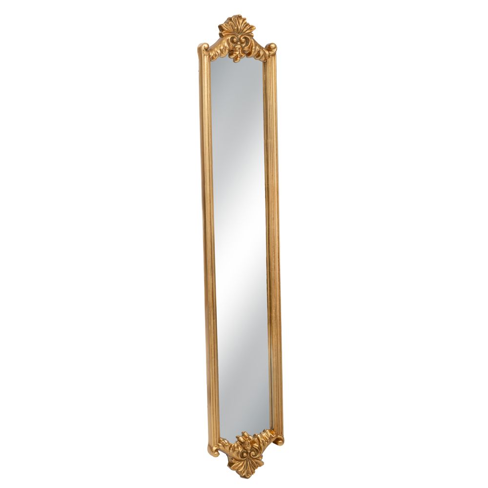 Αναβαθμίστε τη διακόσμηση του χώρου σας με αυτόν τον κομψό καθρέφτη τοίχου. Το χρυσό του πλαίσιο, διακοσμημένο με ανάγλυφες λεπτομέρειες, αποπνέει πολυτέλεια και διαχρονικό στυλ,