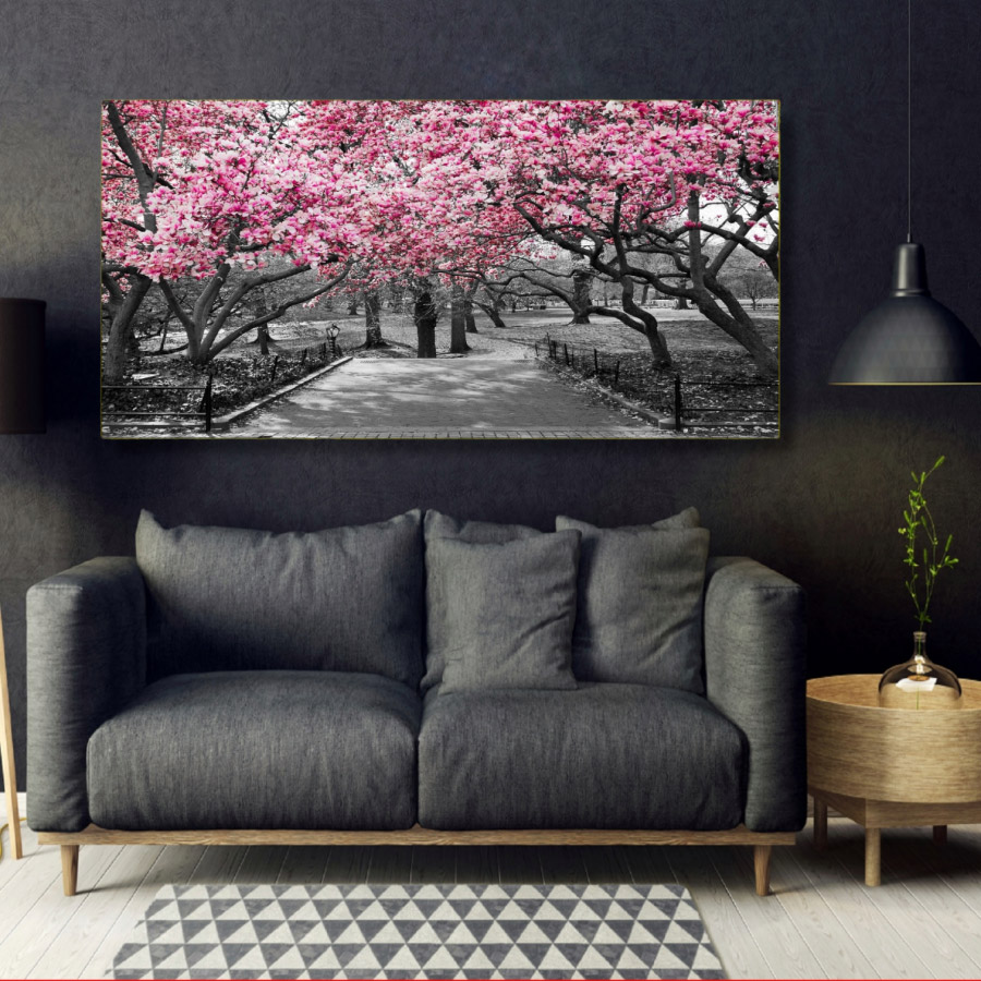 Πίνακας δρόμος με αμυγδαλιές