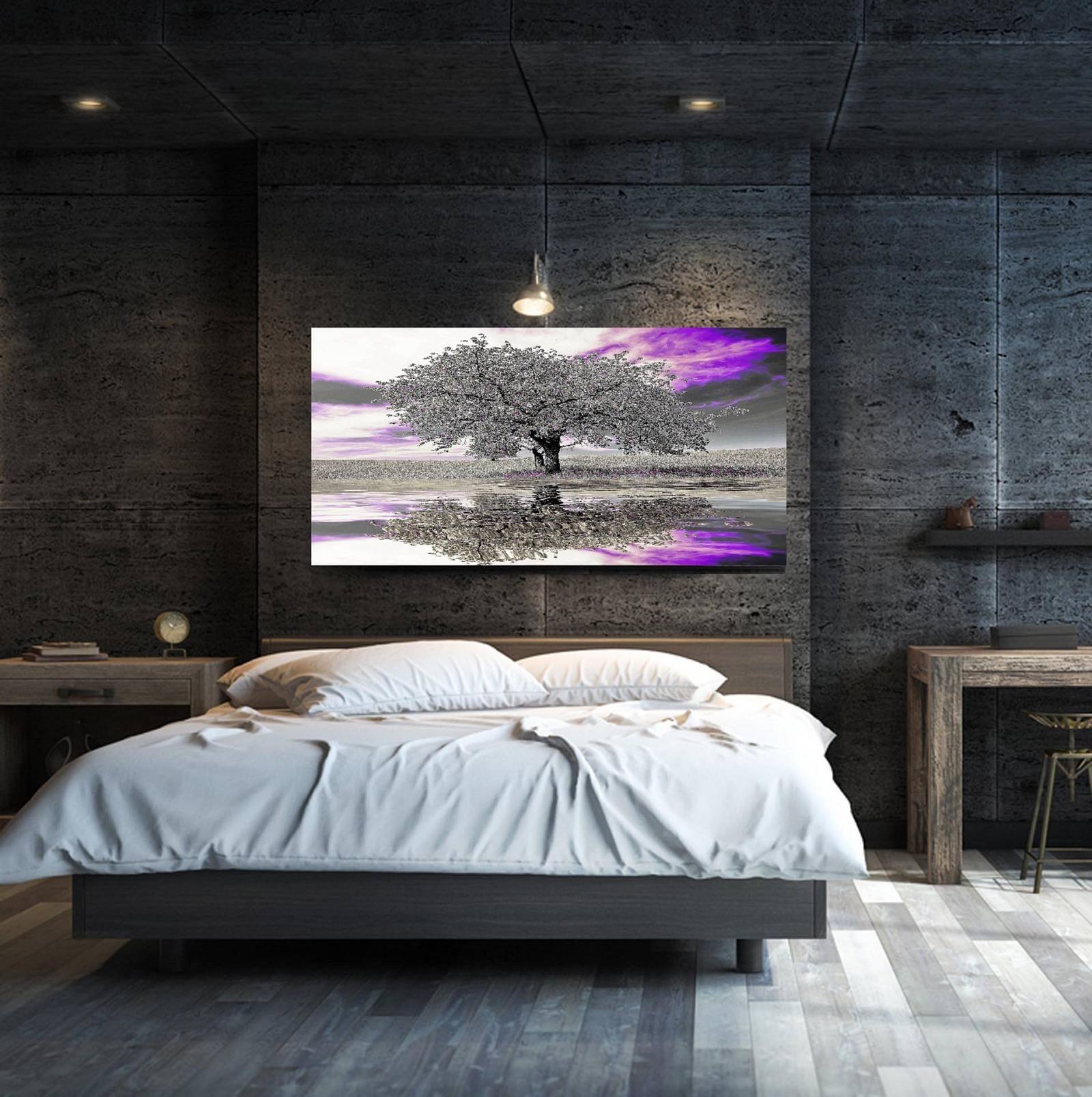 Πίνακας ασημένιο δέντρο με μοβ λεπτομέρειες