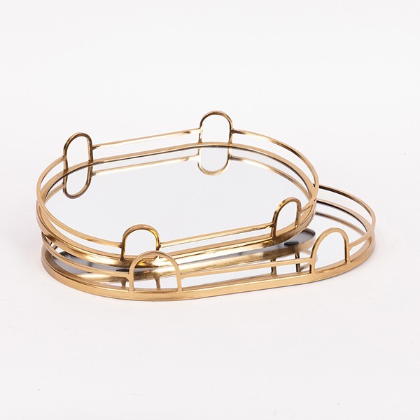 S/2 ΔΙΣΚΟΣ ΜΕΤΑΛΛΙΚΟΣ ΜΕ ΚΑΘΡΕΦΤΗ ΧΡΥΣΟ ΧΡΩΜΑ 35x25x5cm/ 30.5×20.5x5cm